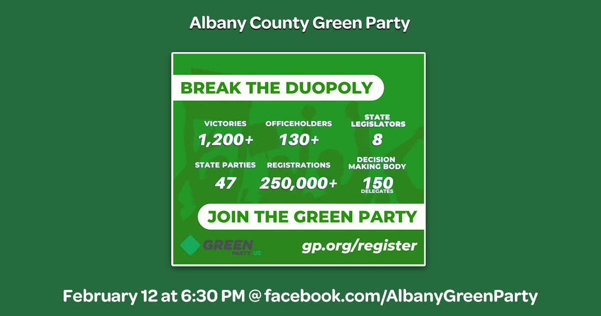 Hate the duopoly but don't know your options? Looking for a Party that fight with and for you? Check out our semi regular seminar about the Albany County Green Party.