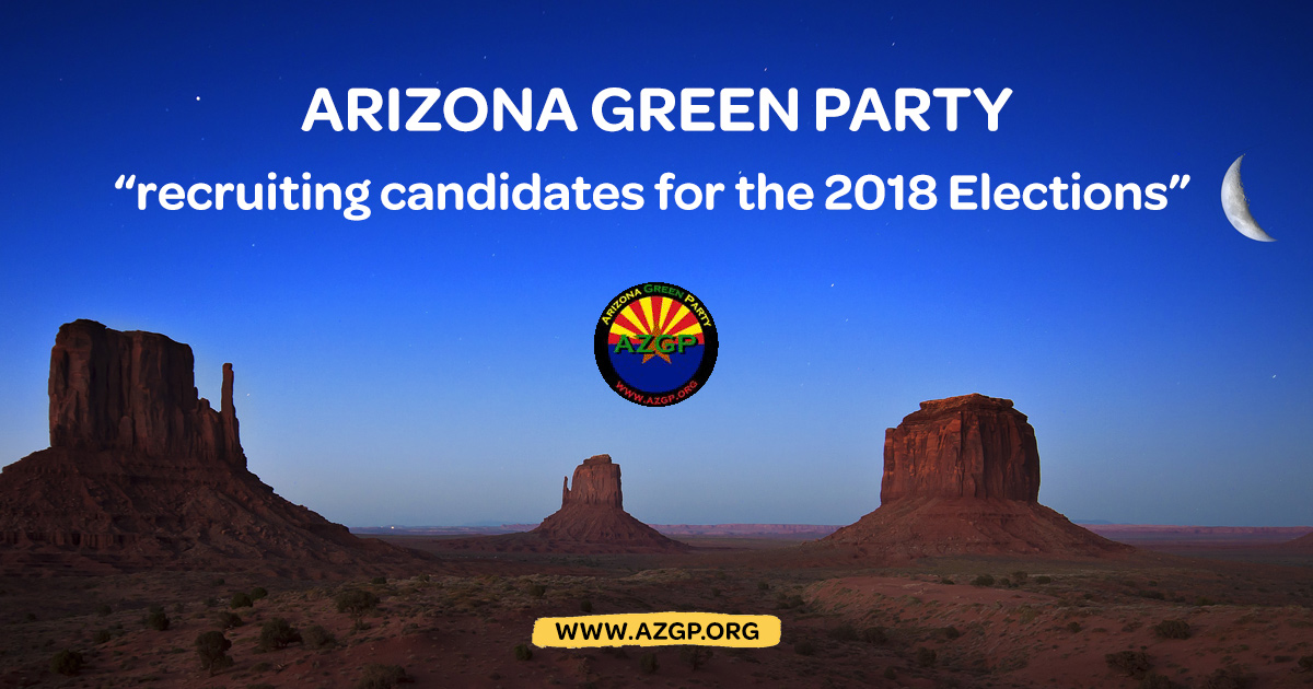 We need to recruit several more Green Party candidates for statewide office, U.S. Congress, and the Arizona State Legislature. If you are a registered Green Party voter here in Arizona, and you are interested in being a candidate in the 2018 Election, please e-mail us at [email protected]. We encourage women, youth, and people-of-color to step up as Green Party candidates. Thanks!