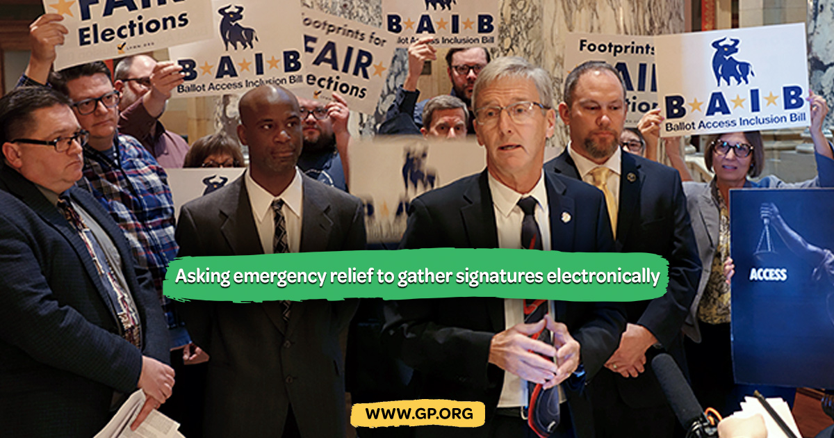 So the leaders of Minnesota's Libertarian, Green and Independence-Alliance parties have asked state lawmakers for emergency relief to let them gather those signatures electronically.