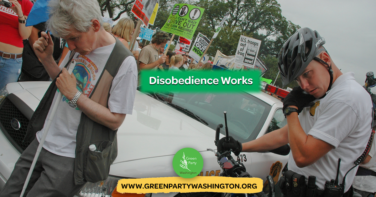Joining the Green Party of Washington to organize for people, peace, and planet while taking clear steps to reject the capitalist order maintained by the duopoly is the kind of disobedience that will accomplish real, progressive change.