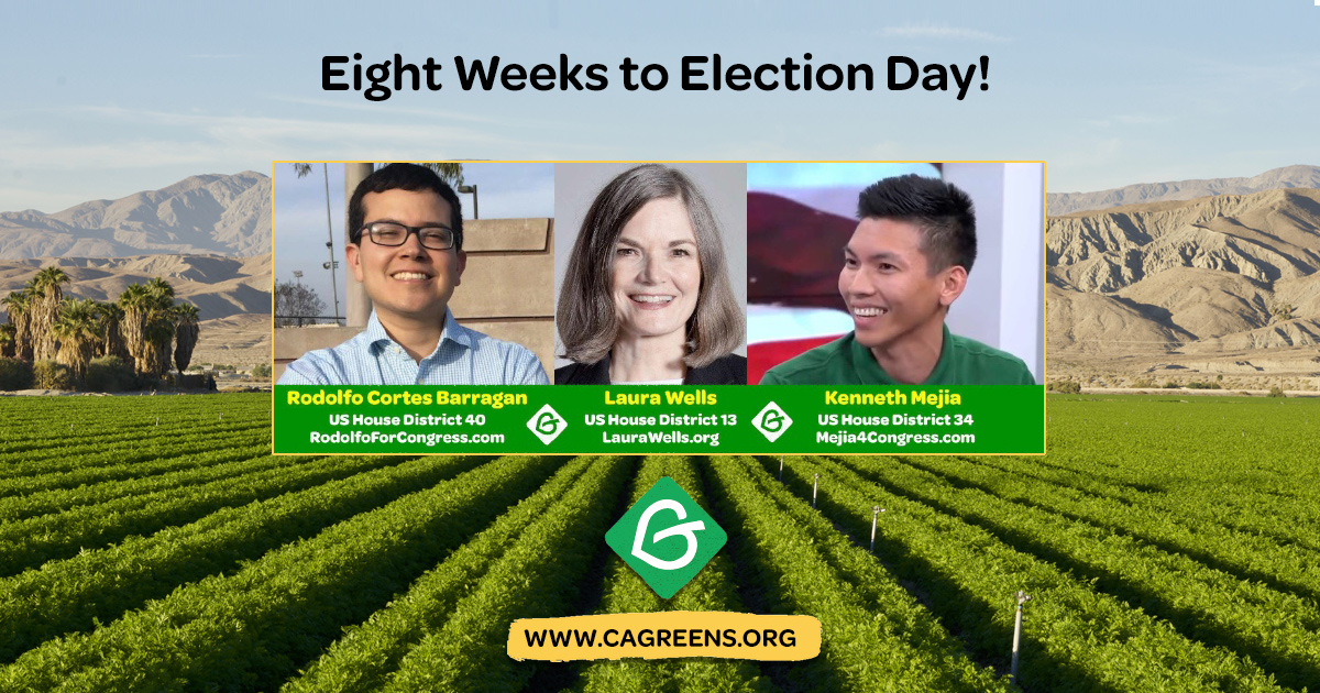 Join the California Green Wave of support for our Green Candidates, Kenneth Mejia (CD 34), Rodolfo Cortes Barragan (CD 40), and Laura Wells (CD 13).