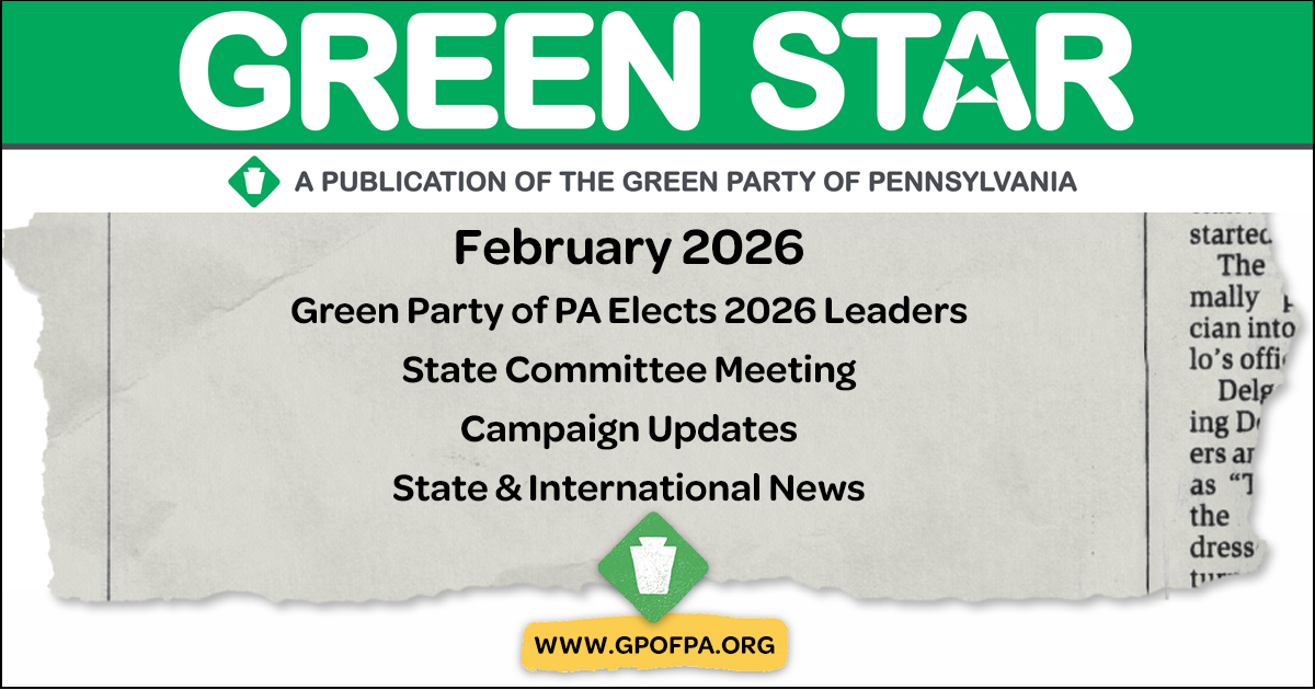 The GREEN STAR is an official publication of the Green Party of Pennsylvania Communications Team * 2026.