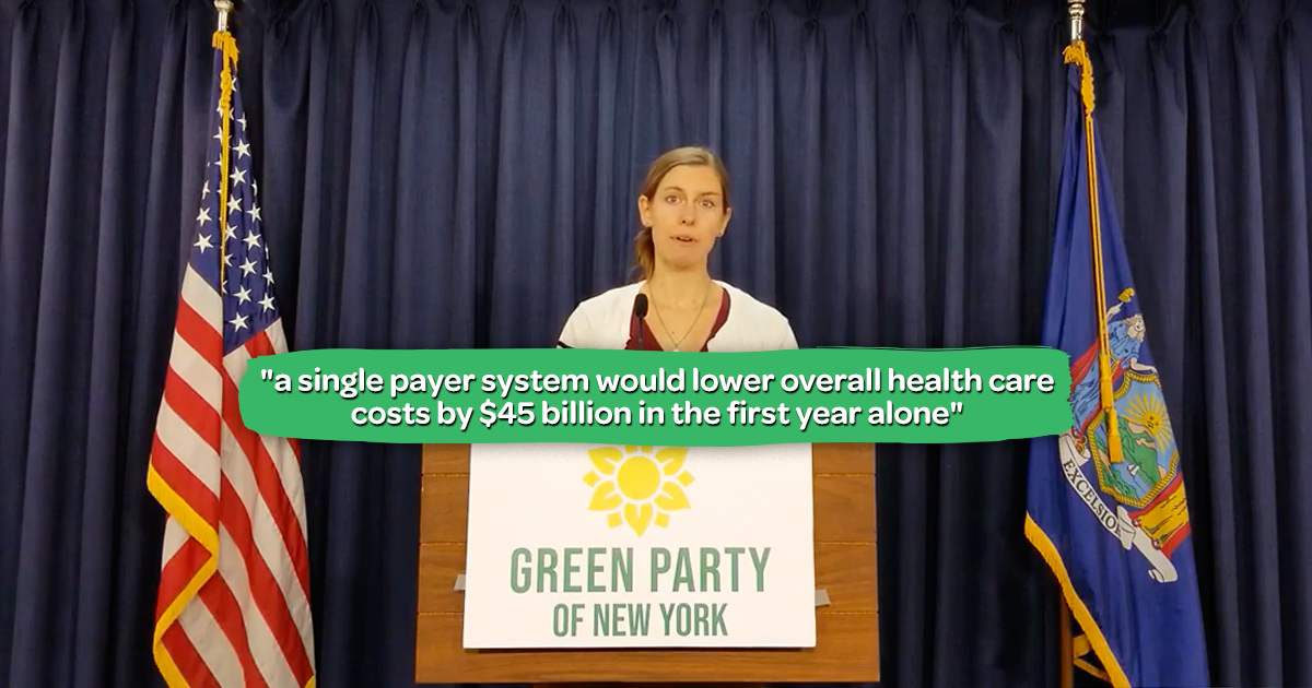 The Green Party said New York should treat quality affordable health care as a fundamental right for all residents, along with a living wage job, housing, and education.
