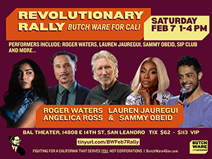 Join Butch Ware next Saturday, Feb. 7 from 1-4:00 pm at Historic BAL Theatre in San Leandro for an afternoon of discussions, sets, and songs to fuel the uprising.