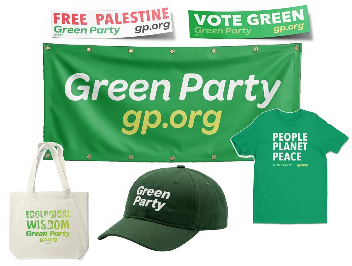 Check out the newest Green Party Merchandise! Be Seen Being Green and get in some unique gear that directly supports the National Green Party. Check out all the Green Party merch at www.GP.org/store
