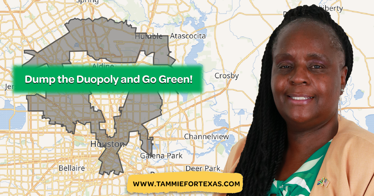 Tammie will do the same for the residents of Congressional District 18 (TX-18) if elected. TX-18 deserves a representative who will vote their conscience in Washington and do what is right—not play political games to keep their seat at the cost of their constituents.
