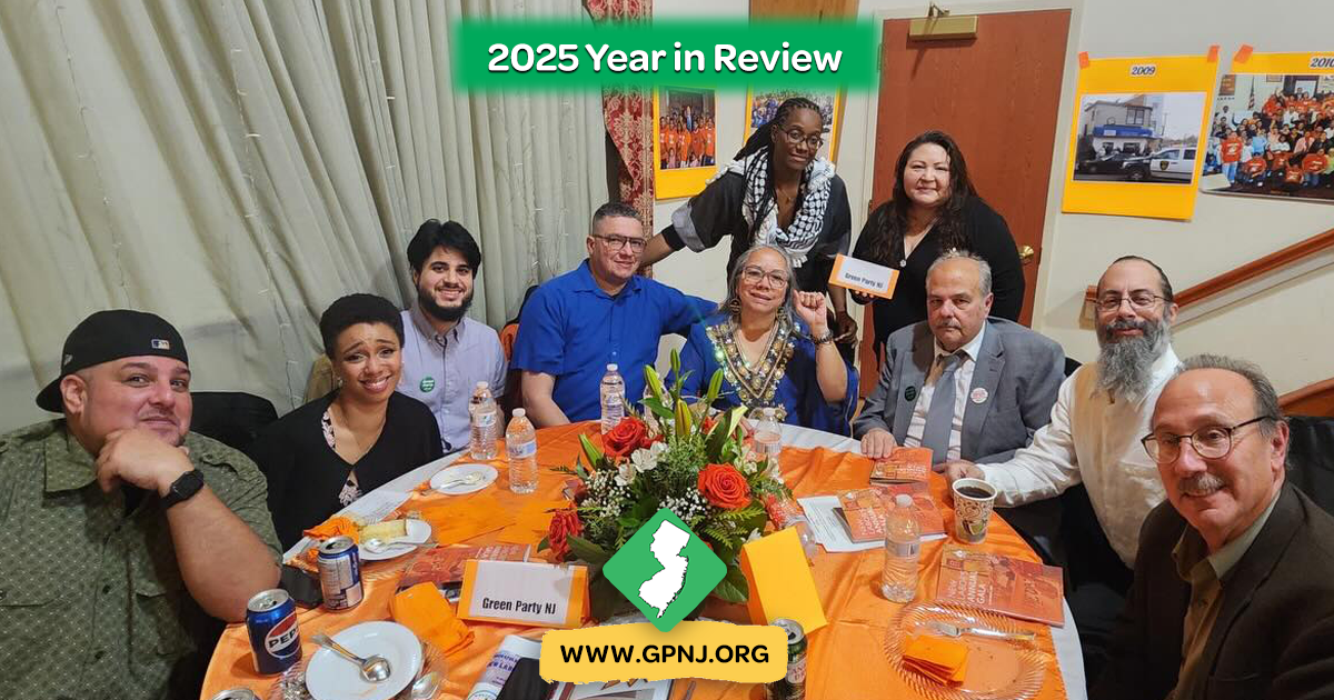 As we begin the second month of 2026, we want to share with you the work of the Green Party of New Jersey (GPNJ), its achievements and successes of 2025, and ask for your support so we can build on those successes in 2026!