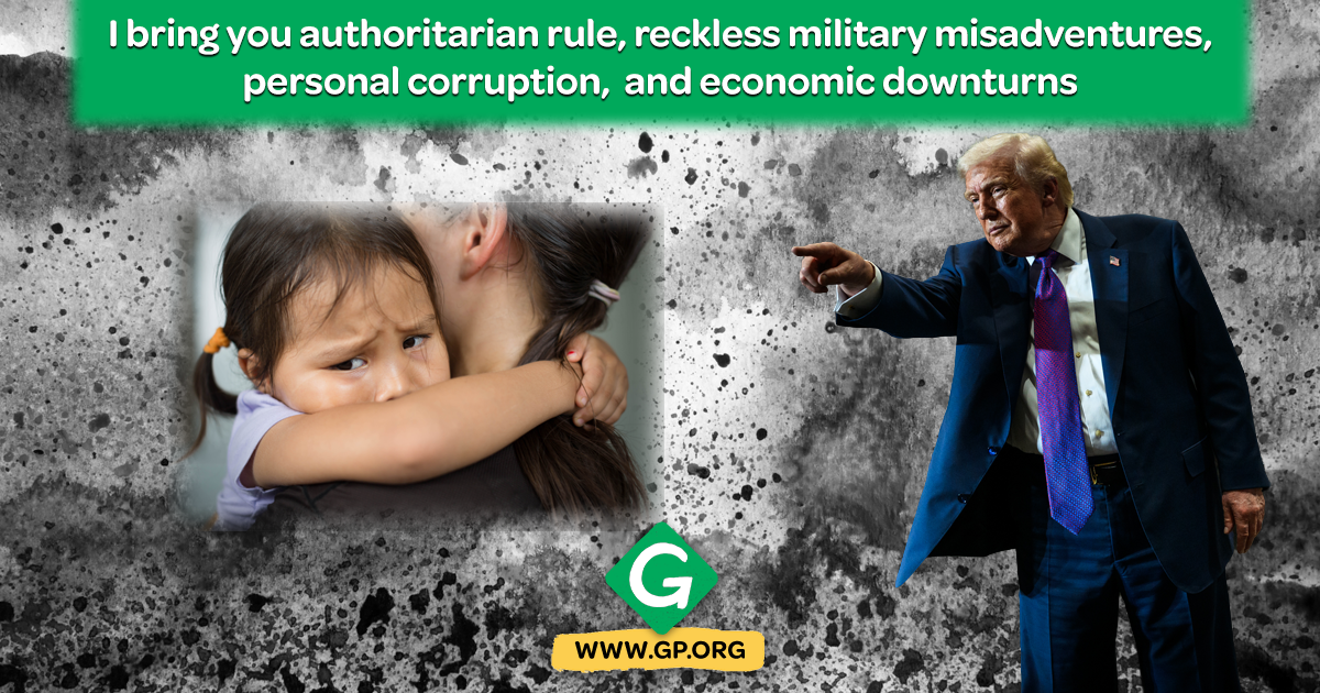 The Green Party of the United States harshly criticized President Trump as he delivered the annual State of the Union, saying that he is promoting authoritarian rule, reckless military misadventures, personal corruption, and economic downturns. The Party further reminded Americans that Trump has turned ICE into his personal militia to kidnap law-abiding immigrants and intimidate those who challenge his repeated violations of the law.