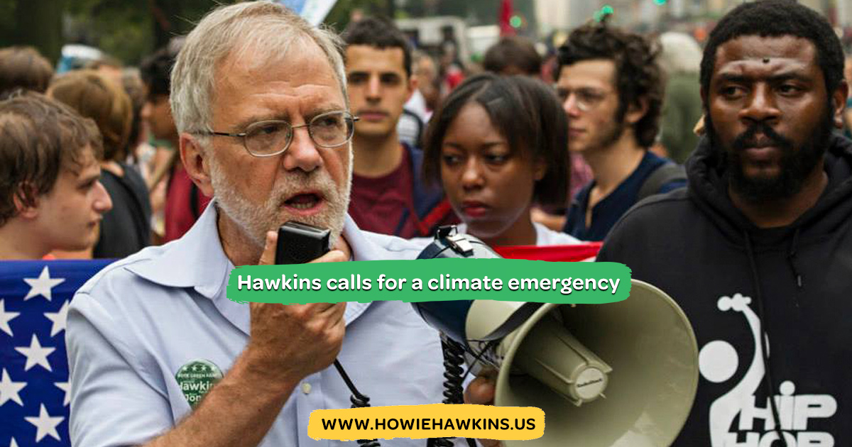 Howie Hawkins, who is seeking the Green Party presidential nomination, today urged the next president to declare a Climate Emergency on the first day in office.