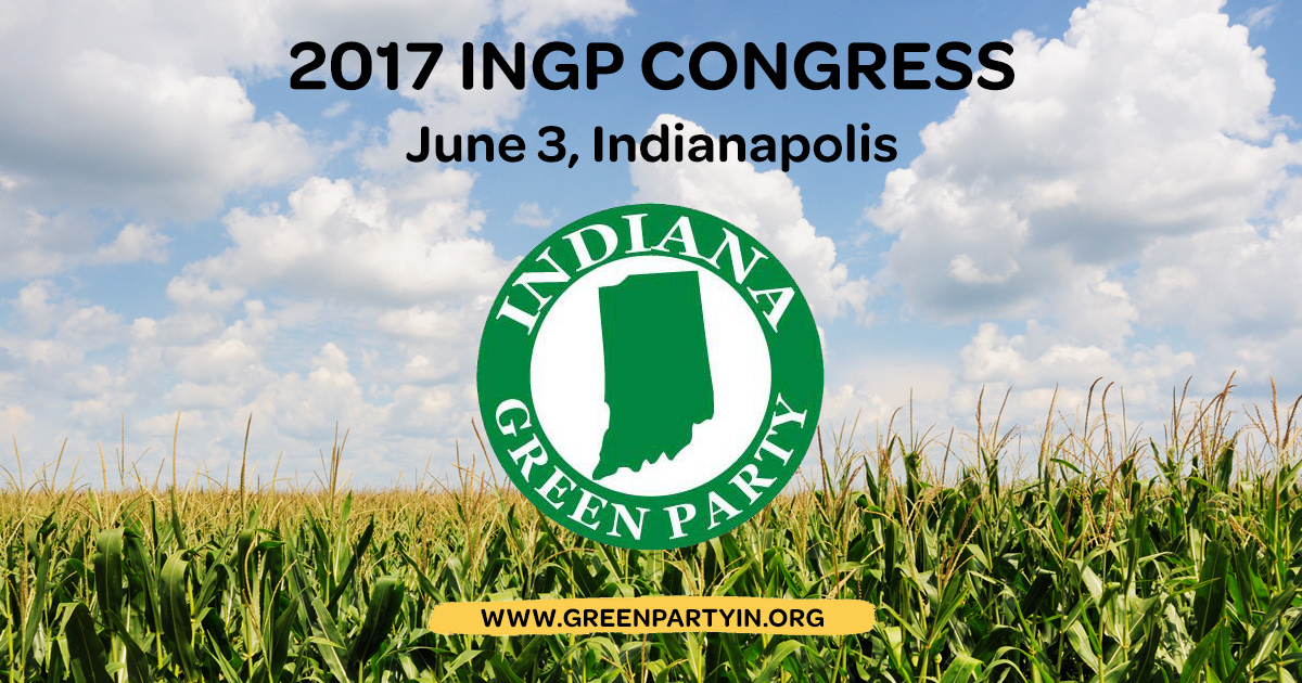 Join the Indiana Green Party for the 2017 INGP Congress! The tentative agenda for our first Congress in years is below. Come and meet fellow Greens, help us shape our INGP platform, discuss future candidacies, and more. Official registration page coming soon!