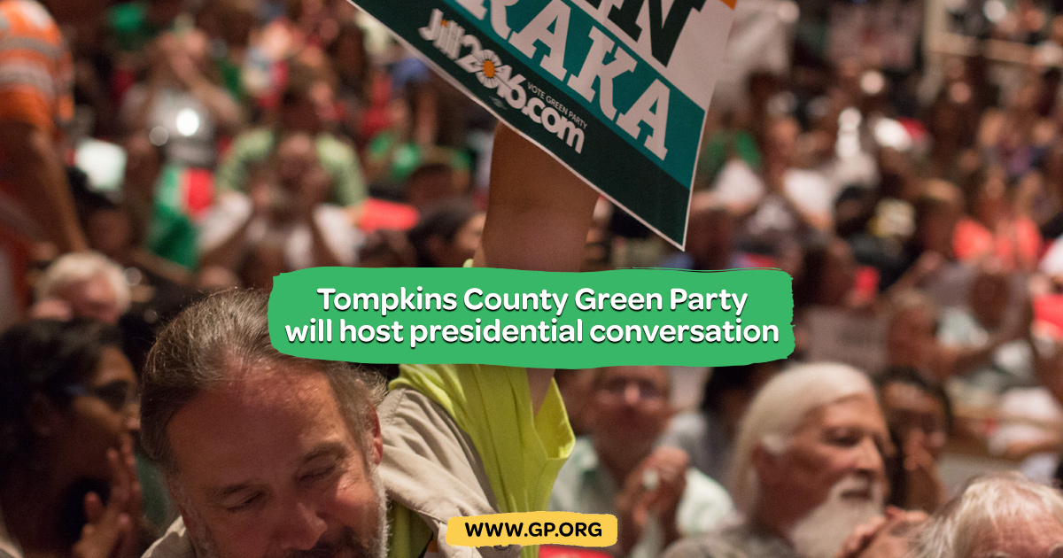 ITHACA, NY – The Tompkins County Green Party's January meeting will be dedicated to a Presidential Conversation. What's involved in getting on the ballot as a Green? How does the Green Party promote candidates, and how does it select a candidate? How does the process work in New York State specifically? How does this compare to, and sometimes interact with, candidate selections from other parties?