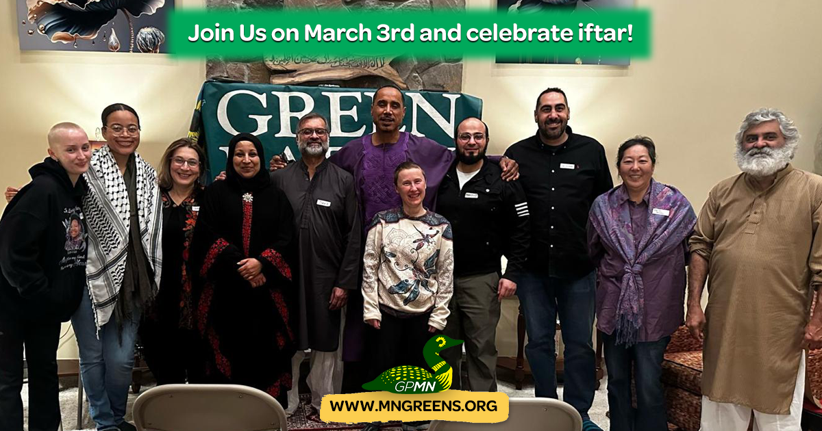 We would like to invite you to join the Minnesota Greens and Green Party of Minnesota Muslim-American Caucus for an iftar celebration, breaking the Ramadan fast, and showing support for the Green Party of Minnesota and Dr. Butch Ware, Green candidate for Governor of California! As we enter the 2026 election cycle, we're hoping to raise funds for the state party and create a solid foundation for our potential candidates.