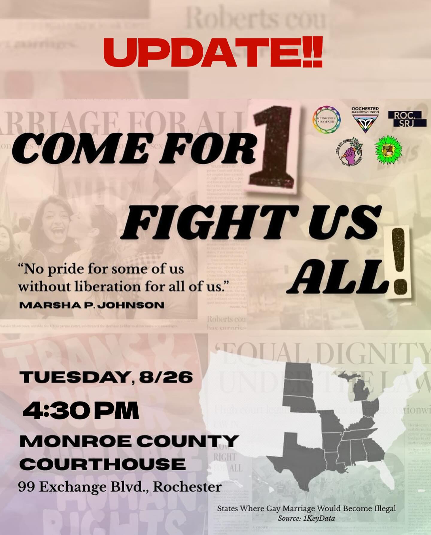 WHERE: Monroe County Courthouse, 99 Exchange Blvd, Rochester NY. At approximately 5:40pm we'll march to Rochester City Hall to demonstrate as well.