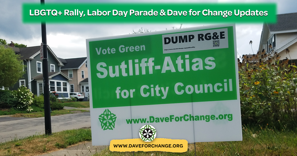 The Green Party of Monroe County and Dave Sutliff-Atias for City Council campaign has joined a coalition of groups that are coming together this Tuesday, August 26th to fight for LBGTQ+ rights. The Greens have always been in the thick of things in fighting injustice and this is no different. Join us!