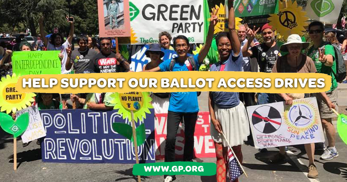Last year, your donations helped our Presidential ticket get on the ballot in 45 states, which was a Green Party record.