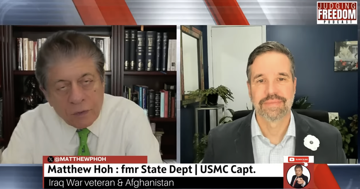 Matt Hoh, the 2022 Green Party of North Carolina gubernatorial candidate, recently made an appearance on Judge Napolitano's Judging Freedom.