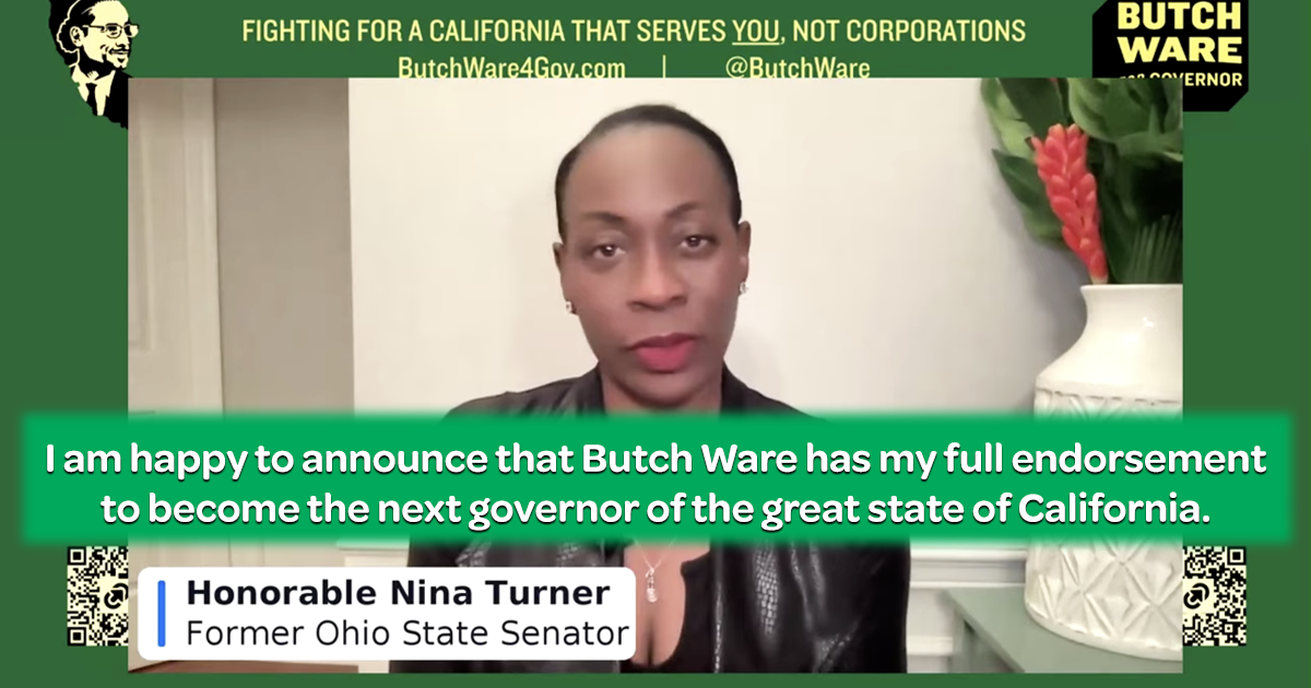 I am happy to announce that Butch Ware has my full endorsement to become the next governor of the great state of California.