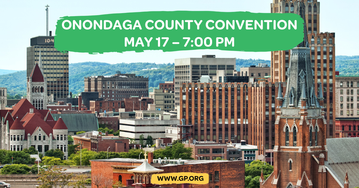 The convention for the Onondaga County Green Party is being held on Thursday. Every enrolled Green has a vote. Observers are welcome. We need your energy and ideas because we need the Green Party more than ever.