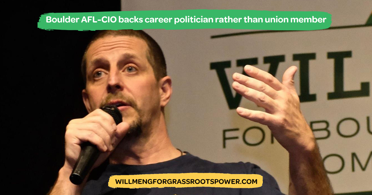The entire process was clearly bent on producing just one outcome. Now, absurdly, the Boulder Area Labor Council is campaigning against the only union member in the county race. This demonstrates the deep crisis and rudderless leadership union membership suffers under today, not only in Boulder County but throughout Colorado and nationwide. The Democratic Party’s politicized use of our union bodies created 50 years of decline in union power.
