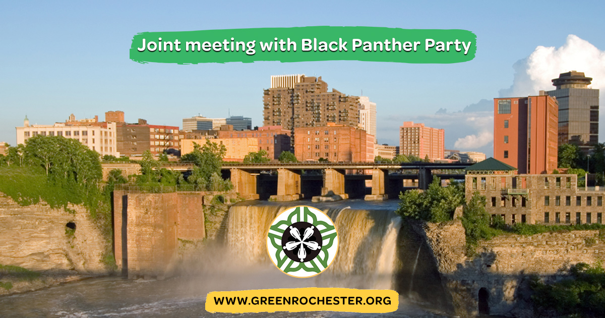 Rochester, NY β Join the Green Party of Monroe County for our February Monthly Meeting, where we'll join members of the Rochester Black Panther Party to discuss the history of the Black Panther Party and what is currently happening here in Rochester.