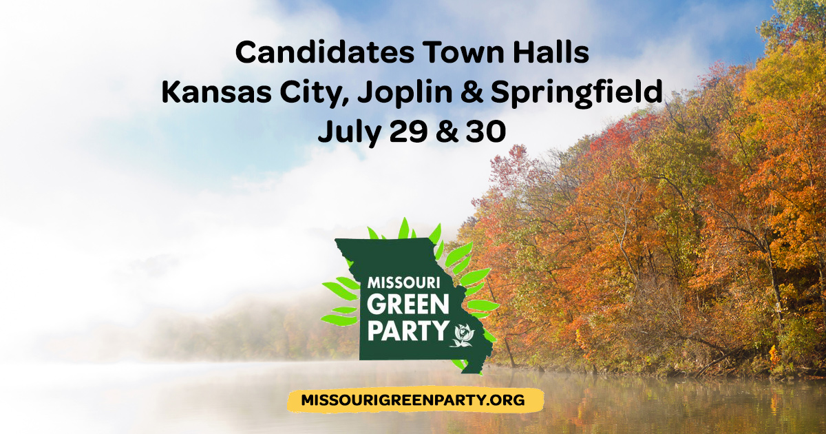 Our candidates for US Senate Jerome Bauer & Jo Crain, as well as Don Fitz for State Auditor will be appearing at three town halls July 29 – 30th along with local candidates at each stop. Come ask them questions and hear how electing Green Party candidates will change politics!