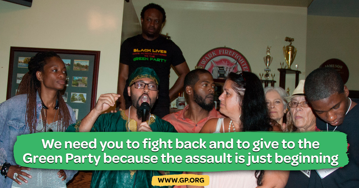 We need you to fight back today and we need you to give to the Green Party today, because this is just the beginning of their assault. The two-party cartel has marshalled their shills within Left spaces because they know that when Greens run in elections we break their stranglehold grip on what's possible in this world and in our lives.