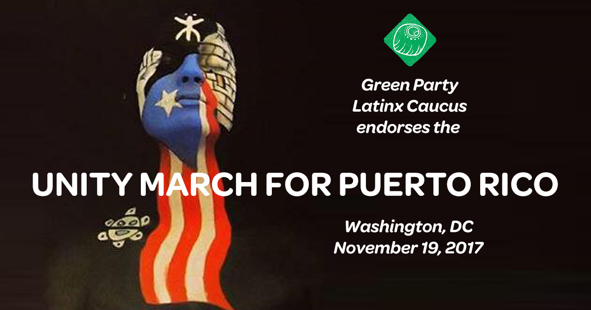 On Sunday, October 29th the Latinx Caucus of the Green Party of the United States endorsed the Unity March for Puerto Rico taking place in Washington, DC on November 19, 2017.